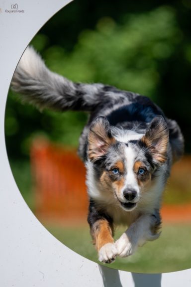 Die BHP hat sie mit 18 Monaten bestanden. Auf Turnieren sind wir im Hoopers und THS unterwegs. Sie arbeitet leise und hochmotiviert, ohne dabei zu überdrehen und lässt sich auch von der Turnieratmosphäre nicht aus der Fassung bringen. Es war schwer sich nur auf zwei Sportarten zu beschränken, weil mit ihr einfach alles Spaß macht.