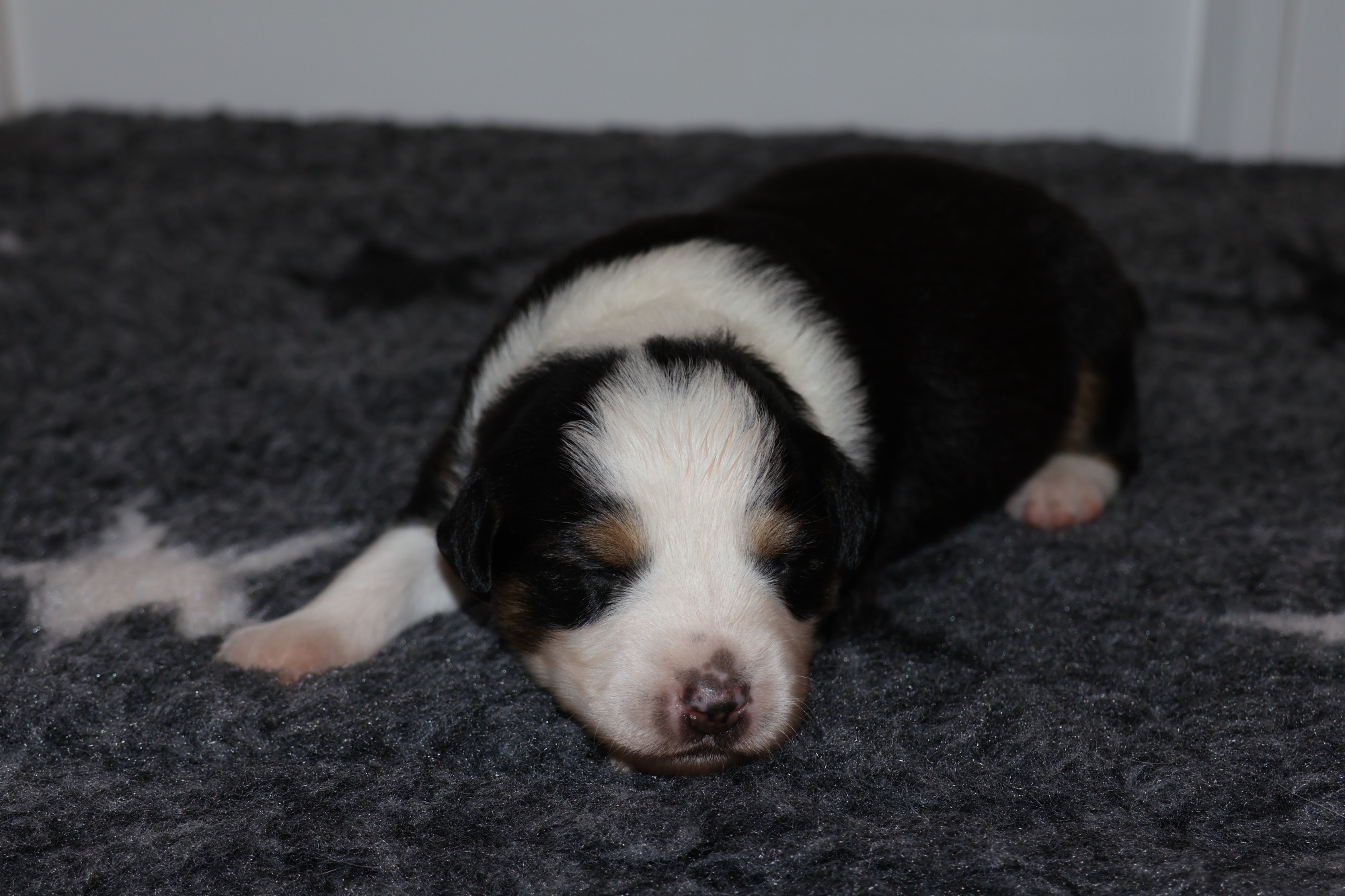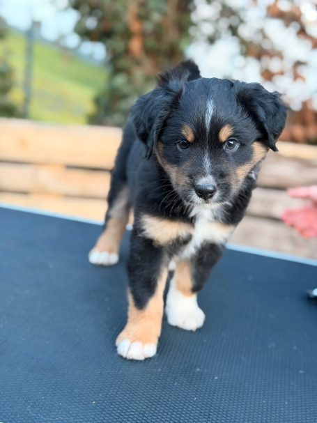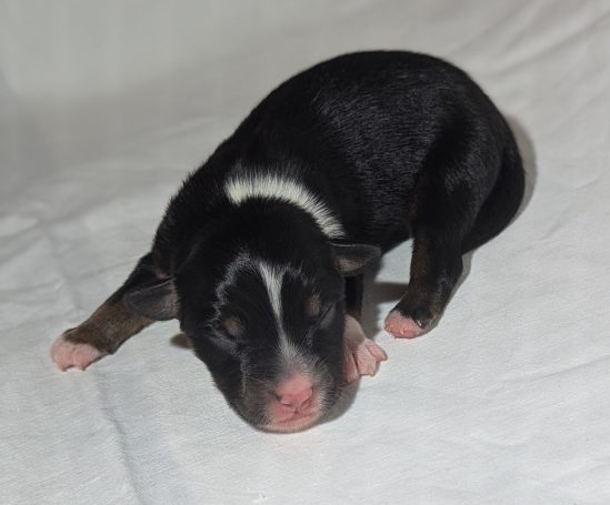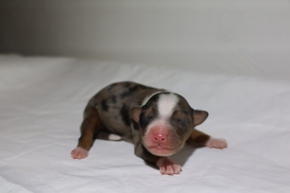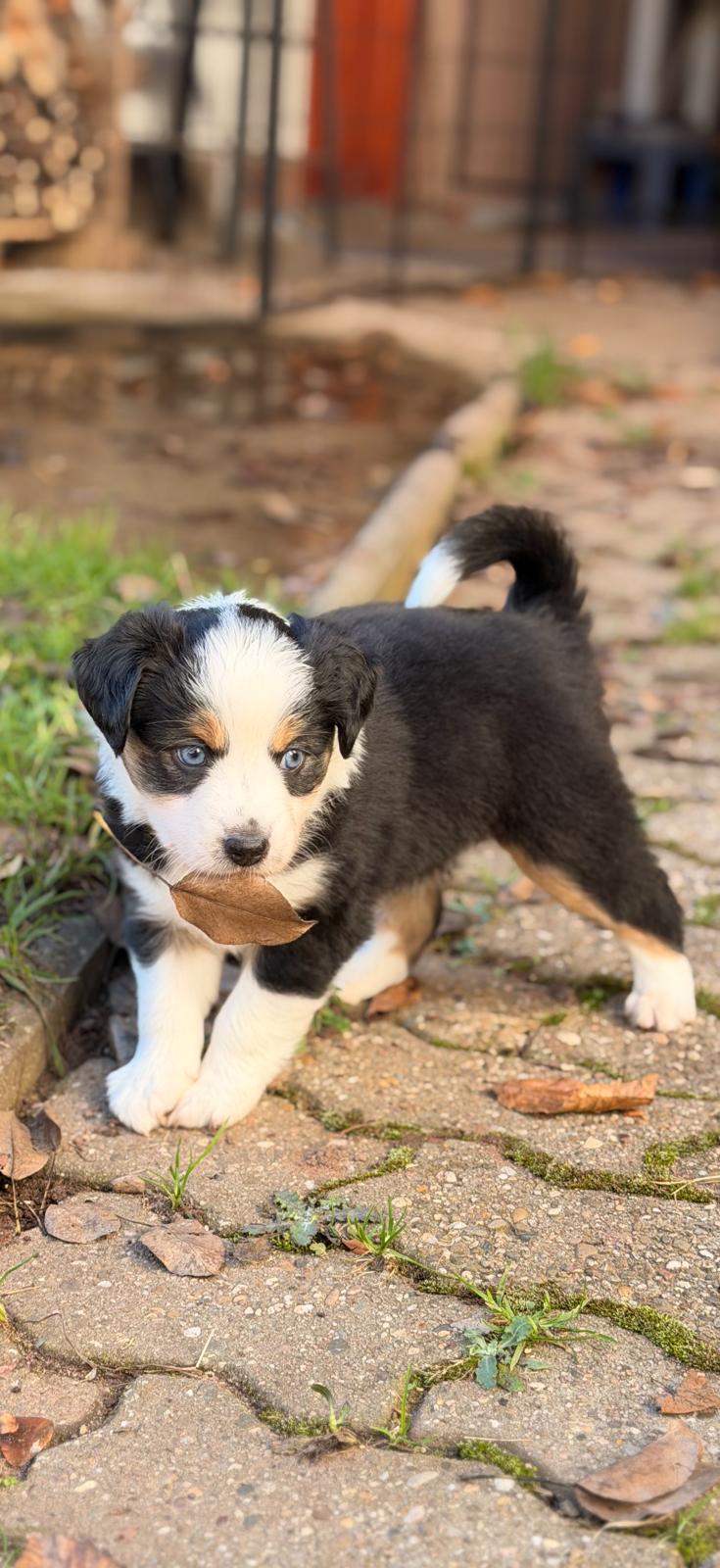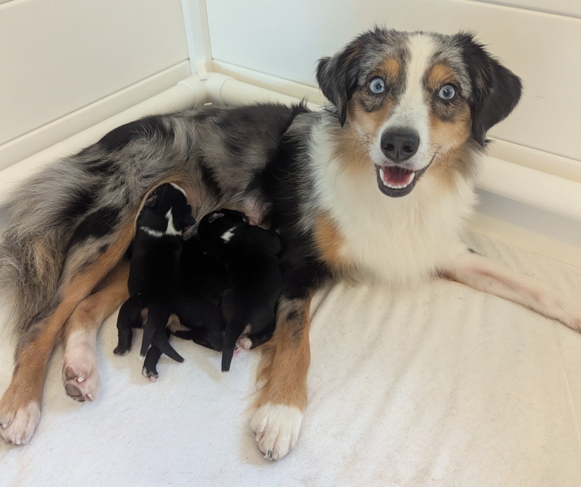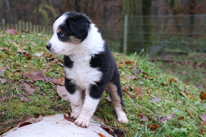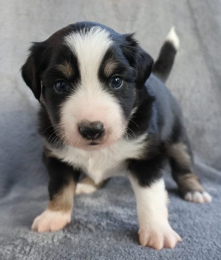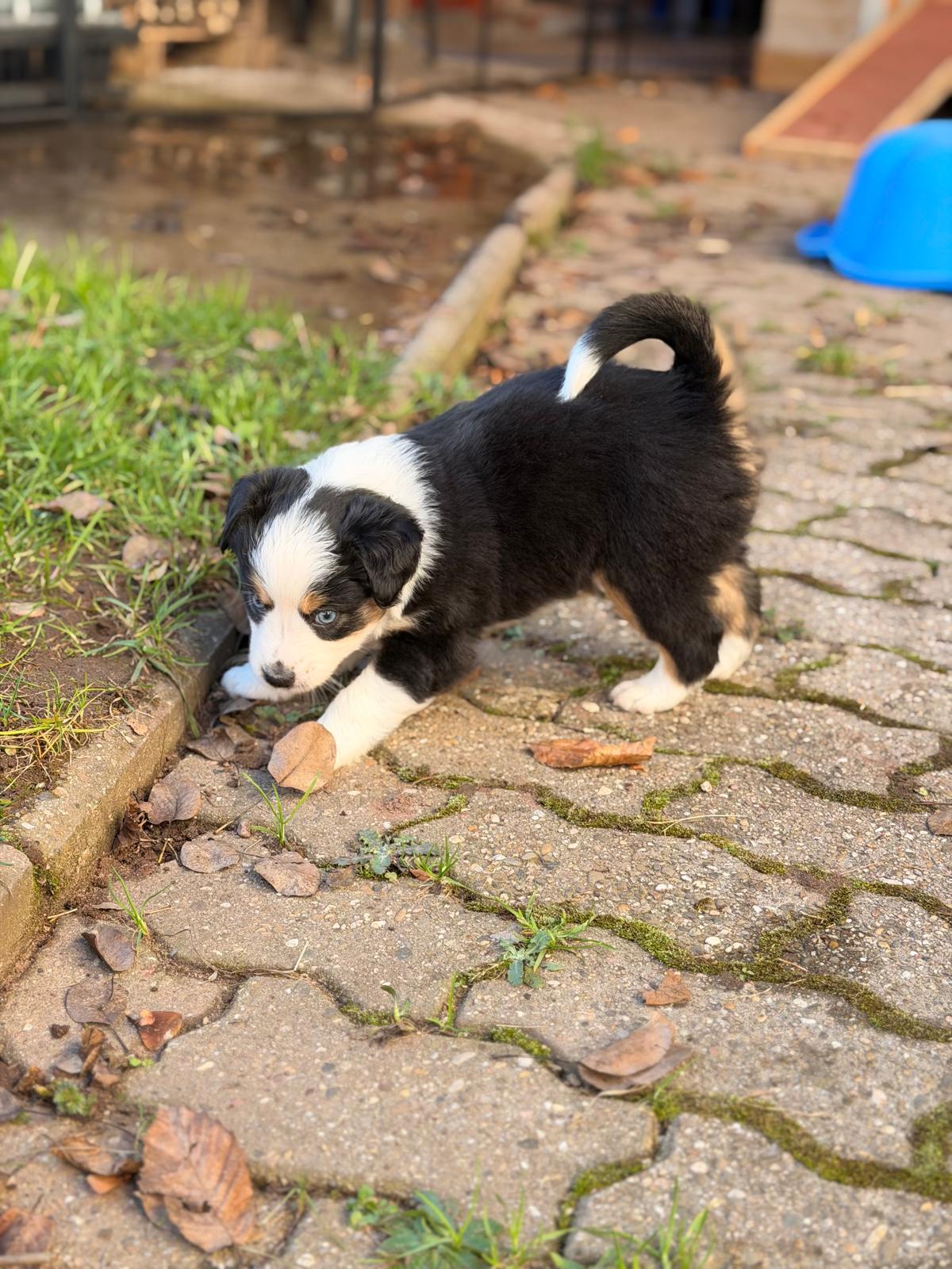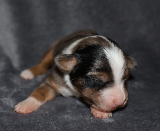 Geboren wurden 2 Hündinnen in Blue Merle und Black Tri und 3 Rüden in Black Tri.