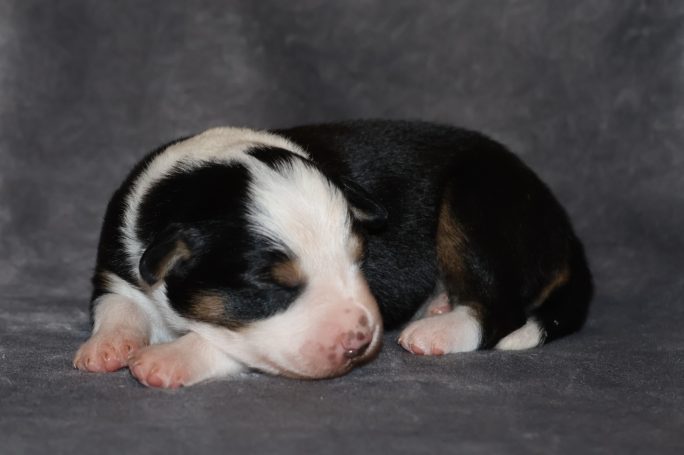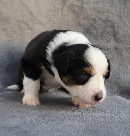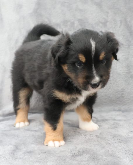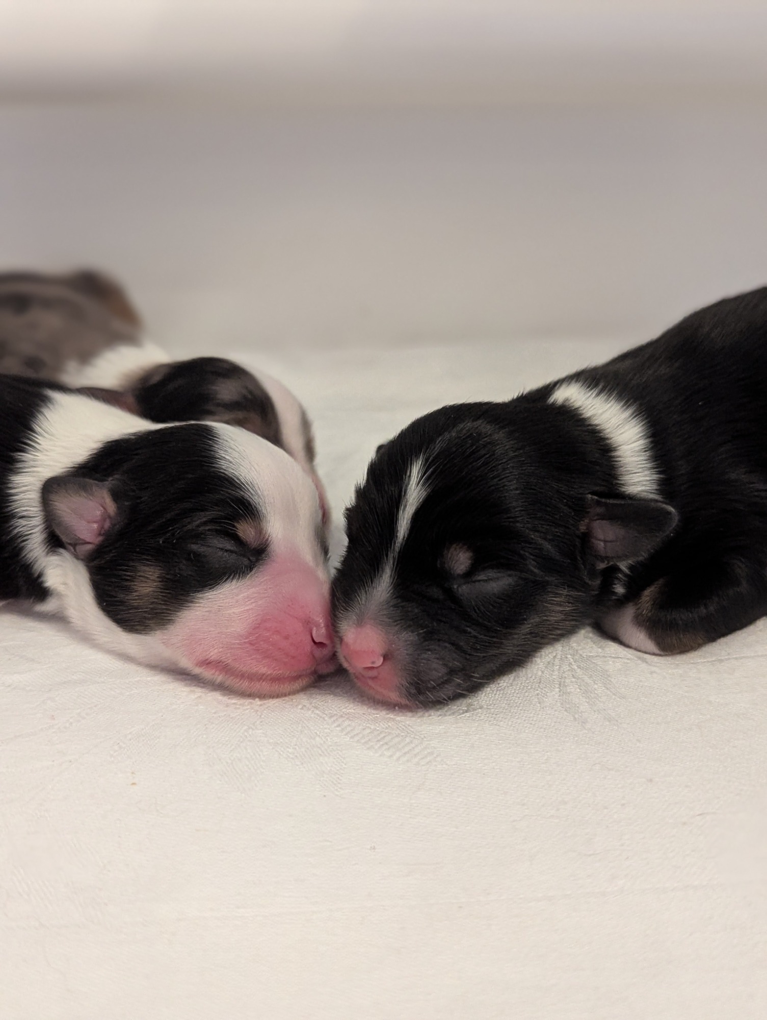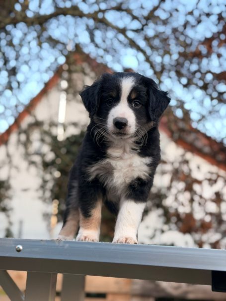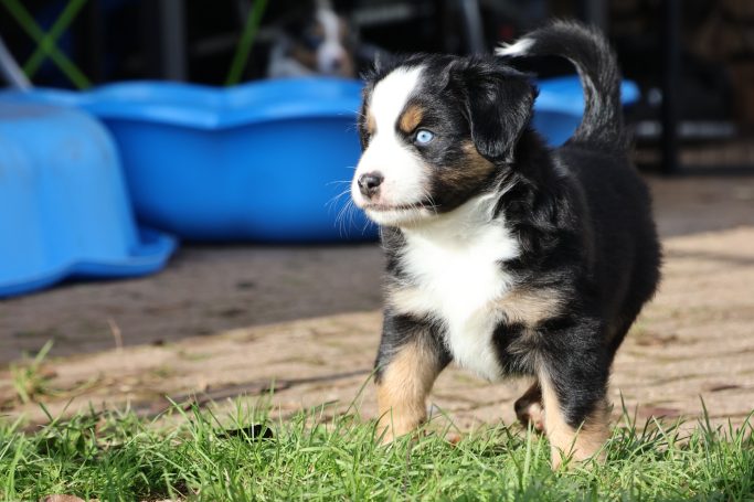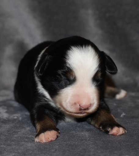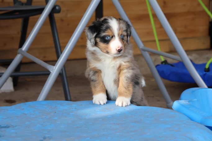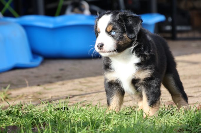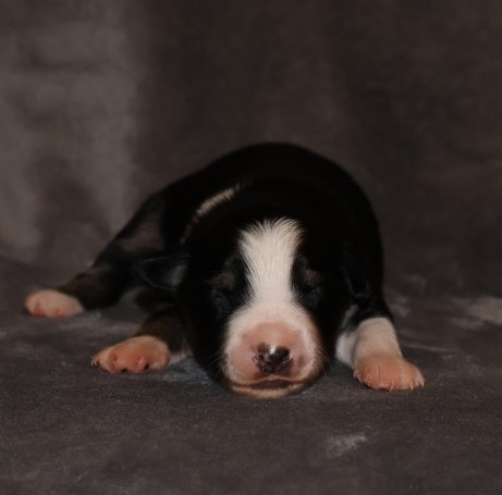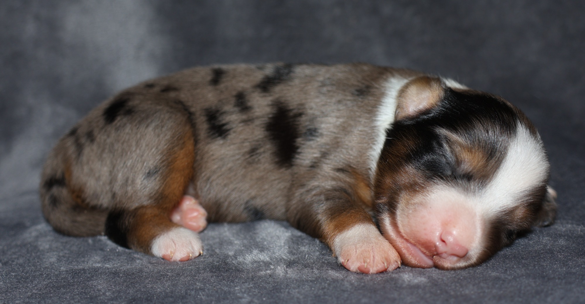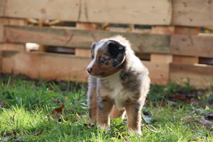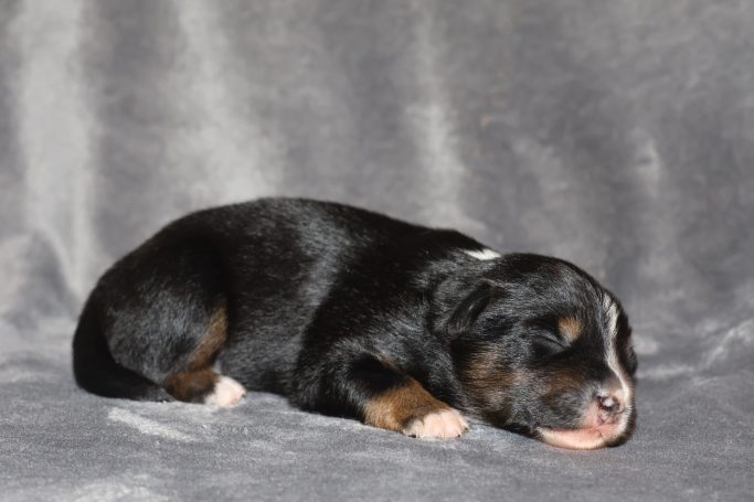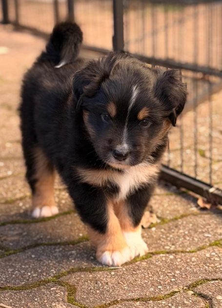 Geboren wurden 2 Hündinnen in Blue Merle und Black Tri und 3 Rüden in Black Tri.