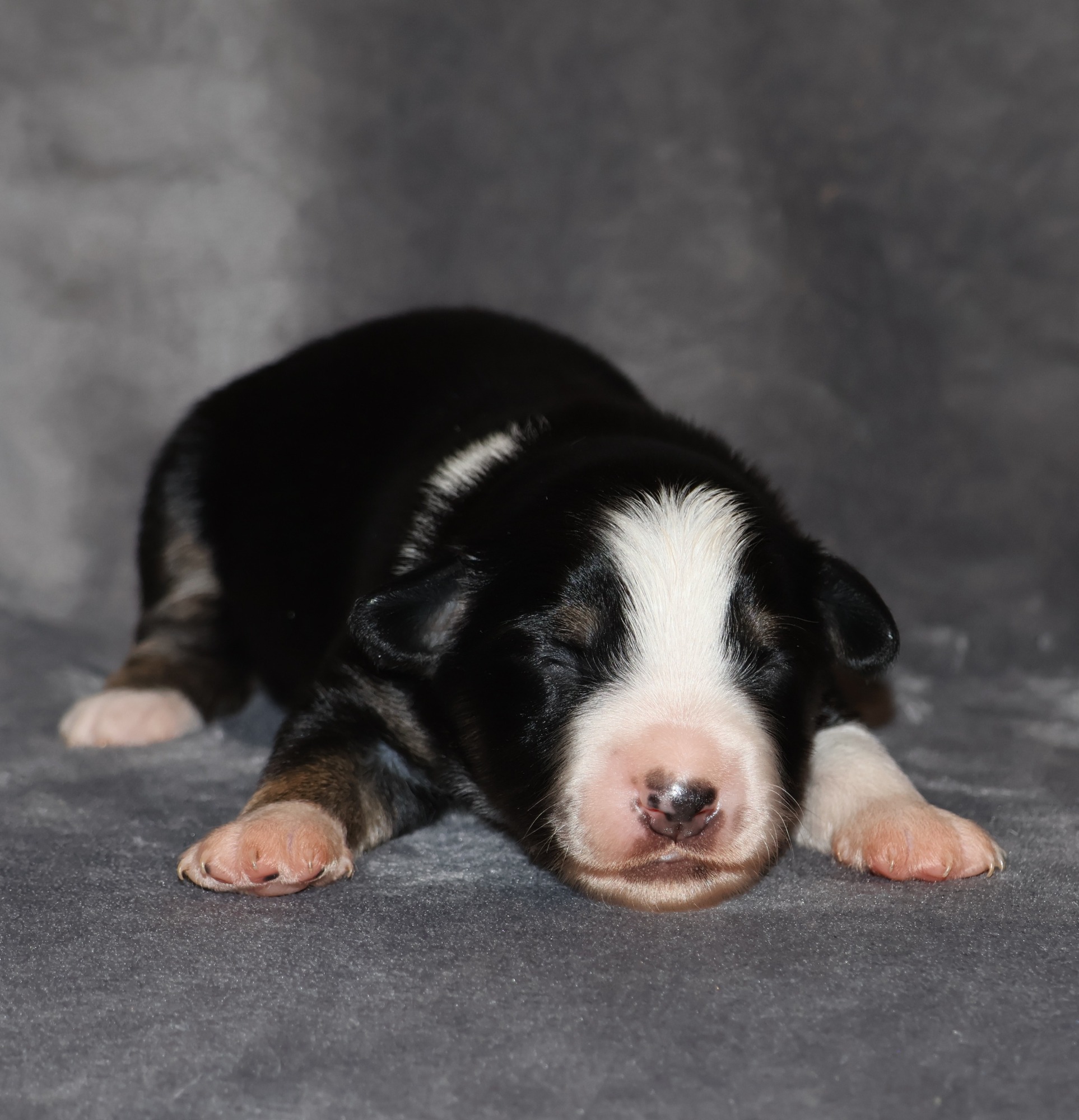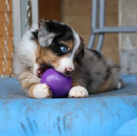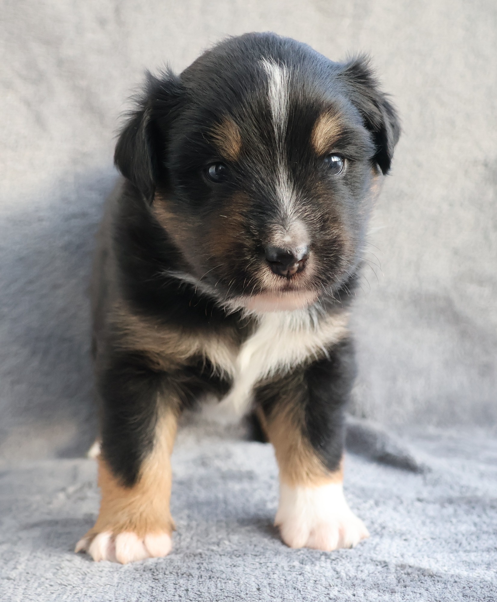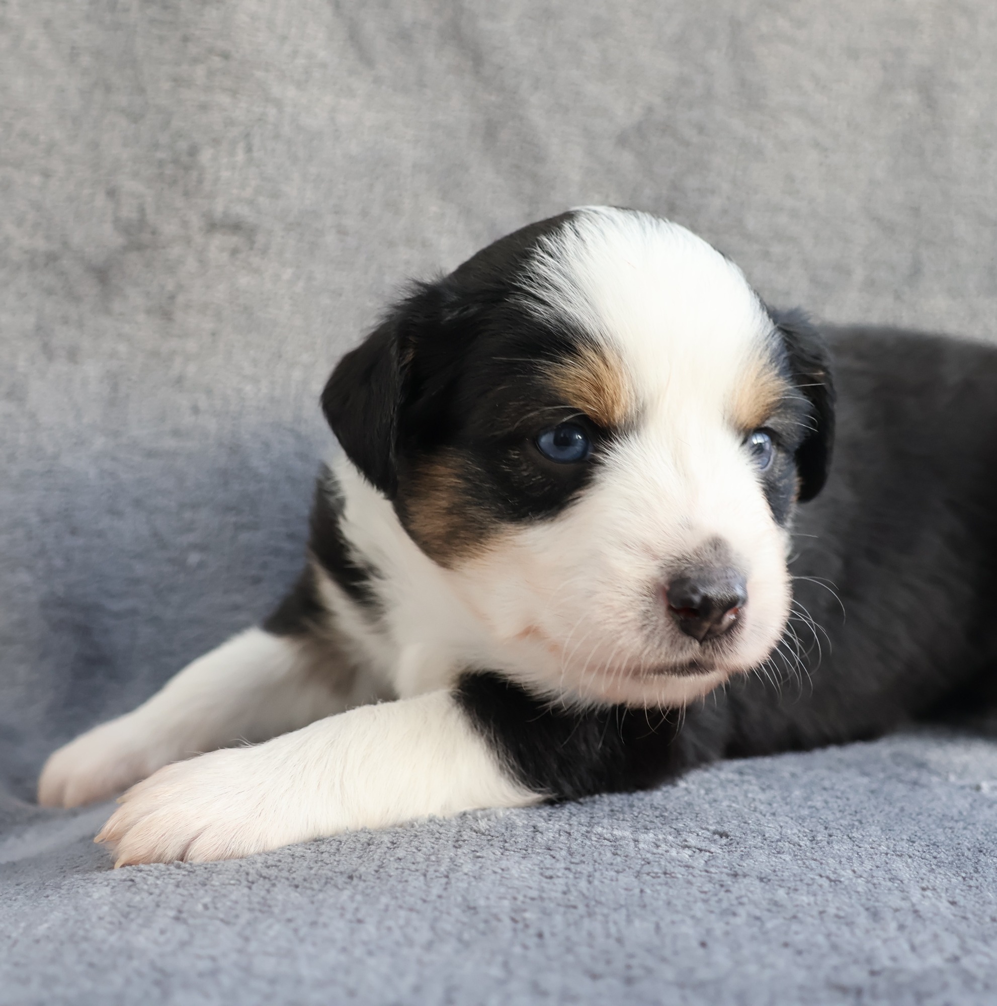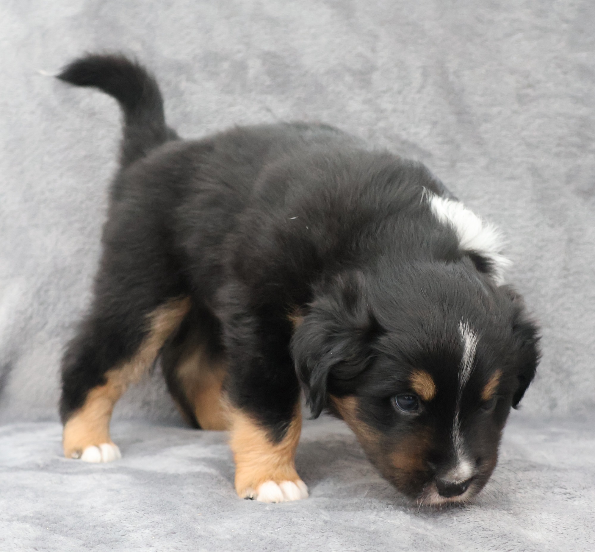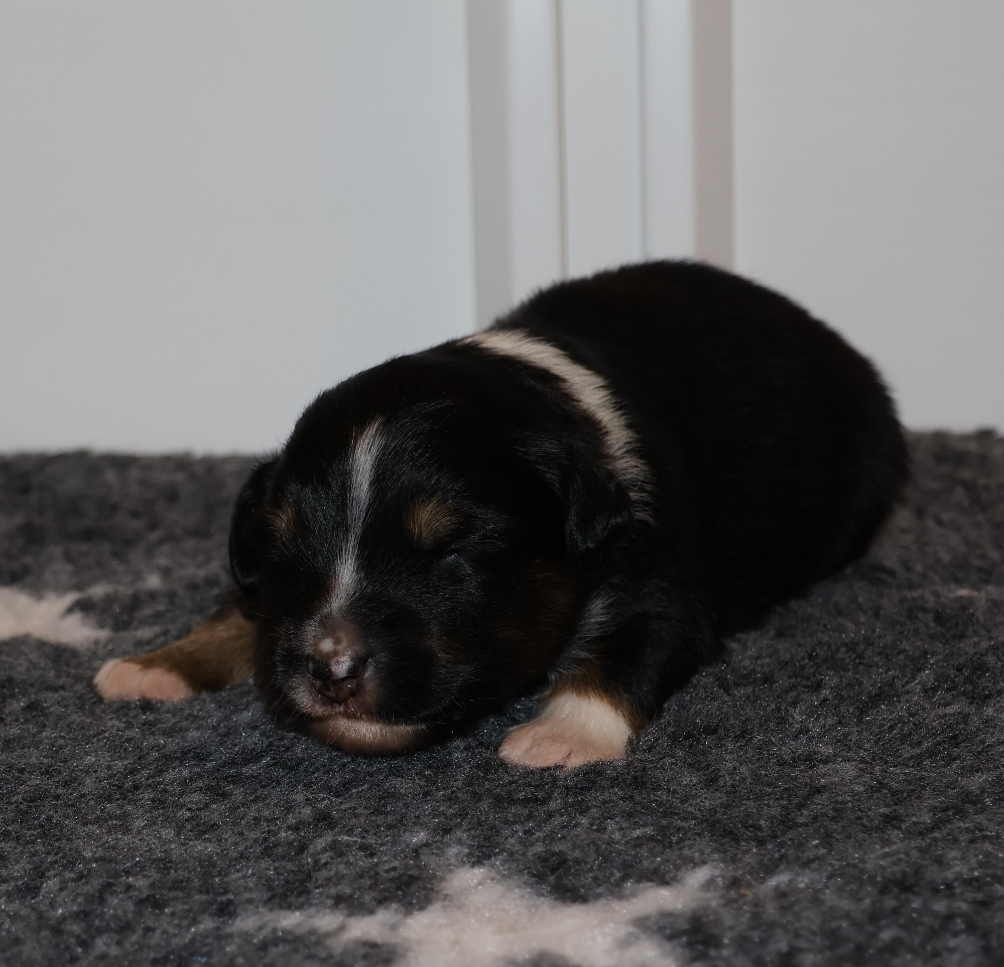 Geboren wurden 2 Hündinnen in Blue Merle und Black Tri und 3 Rüden in Black Tri.