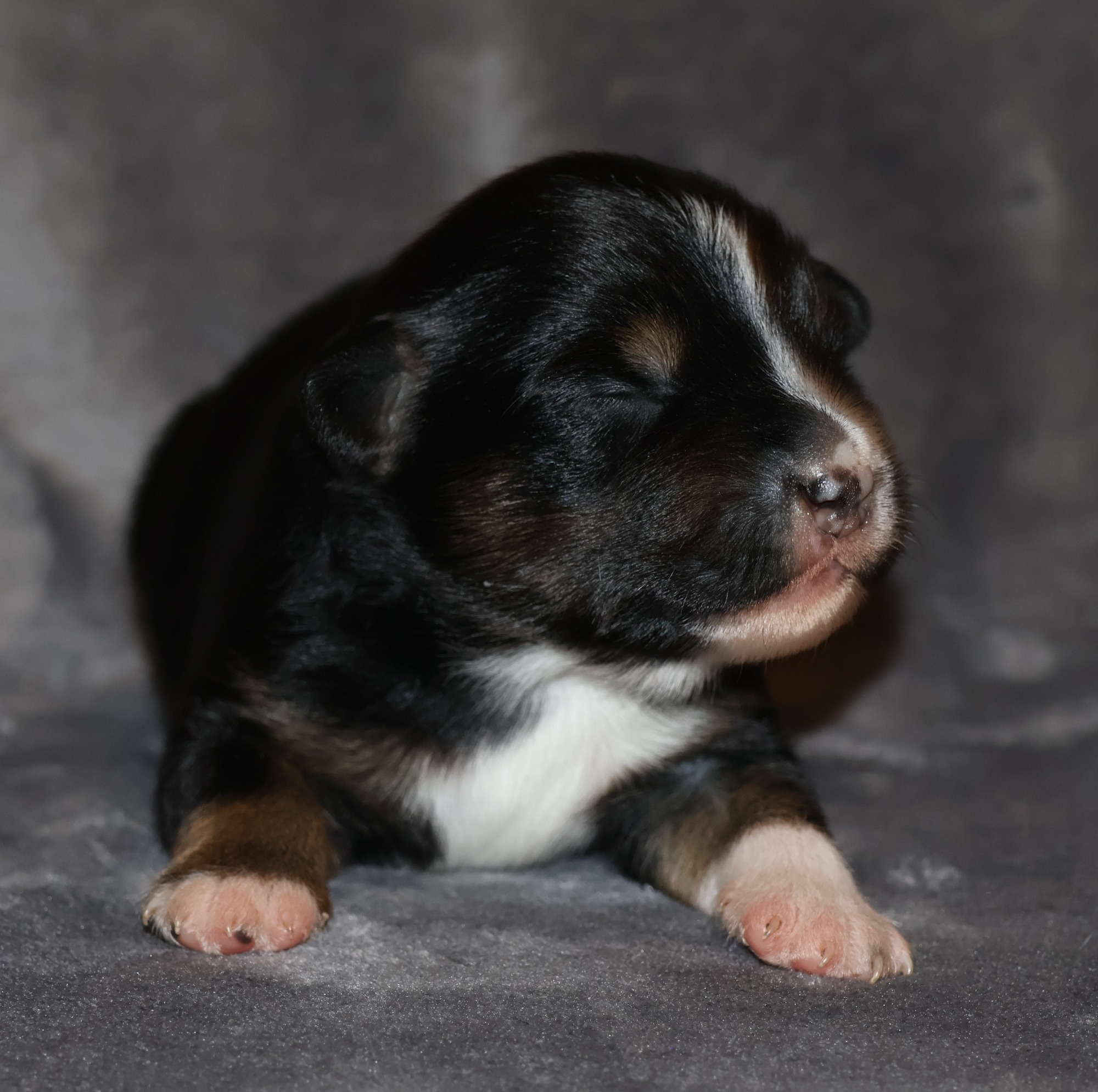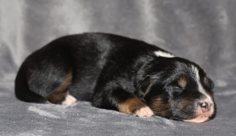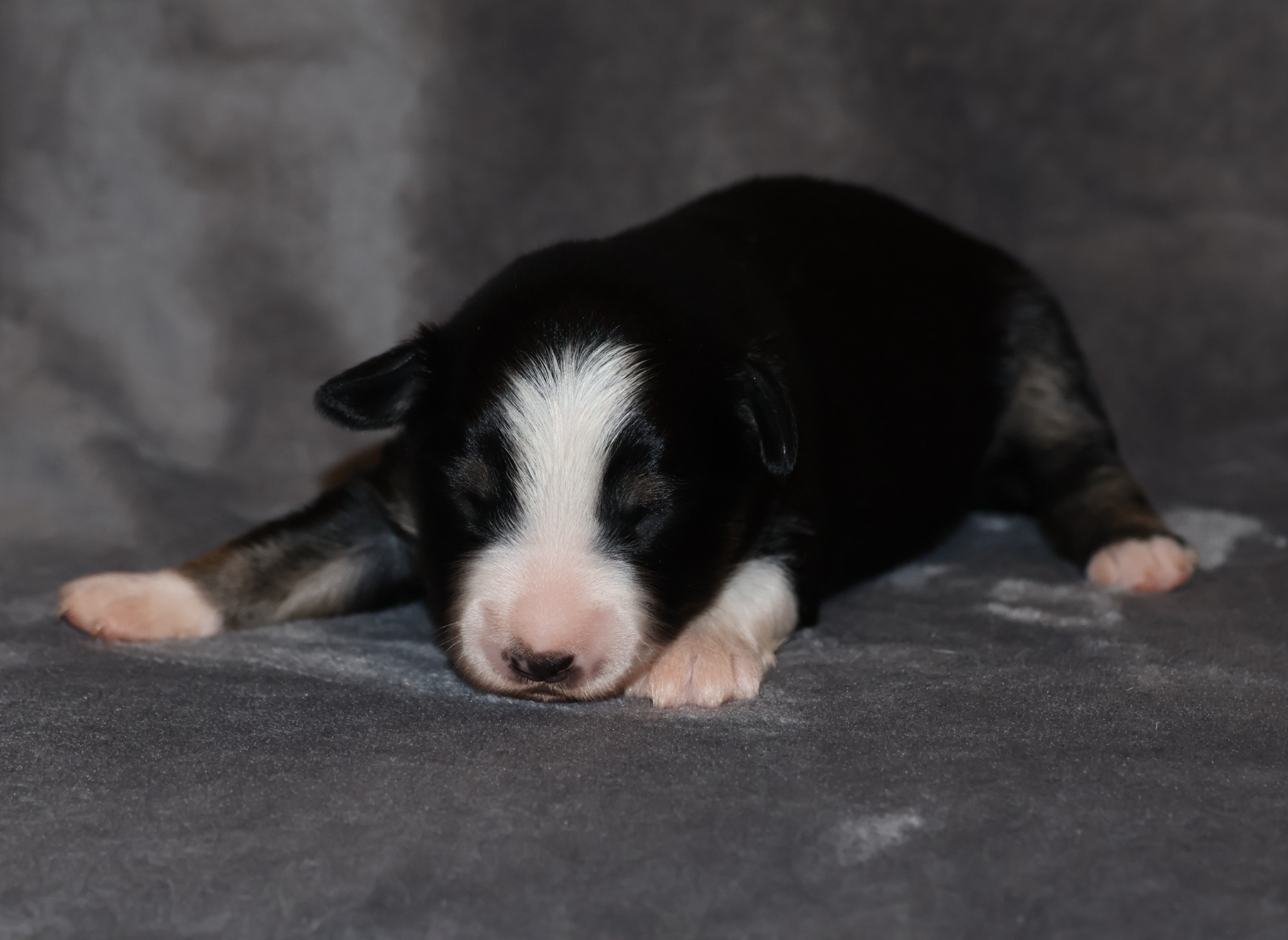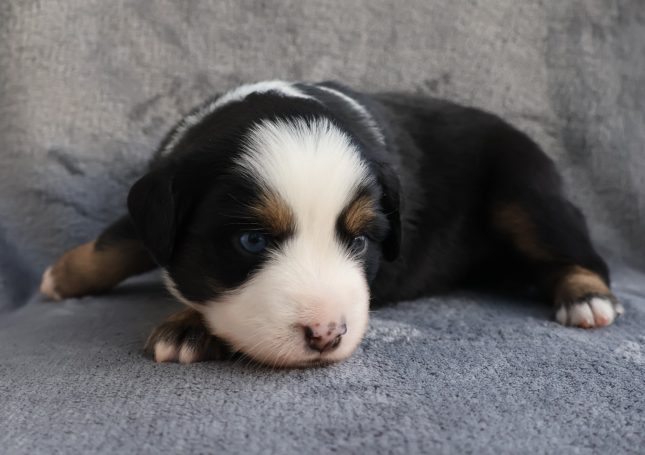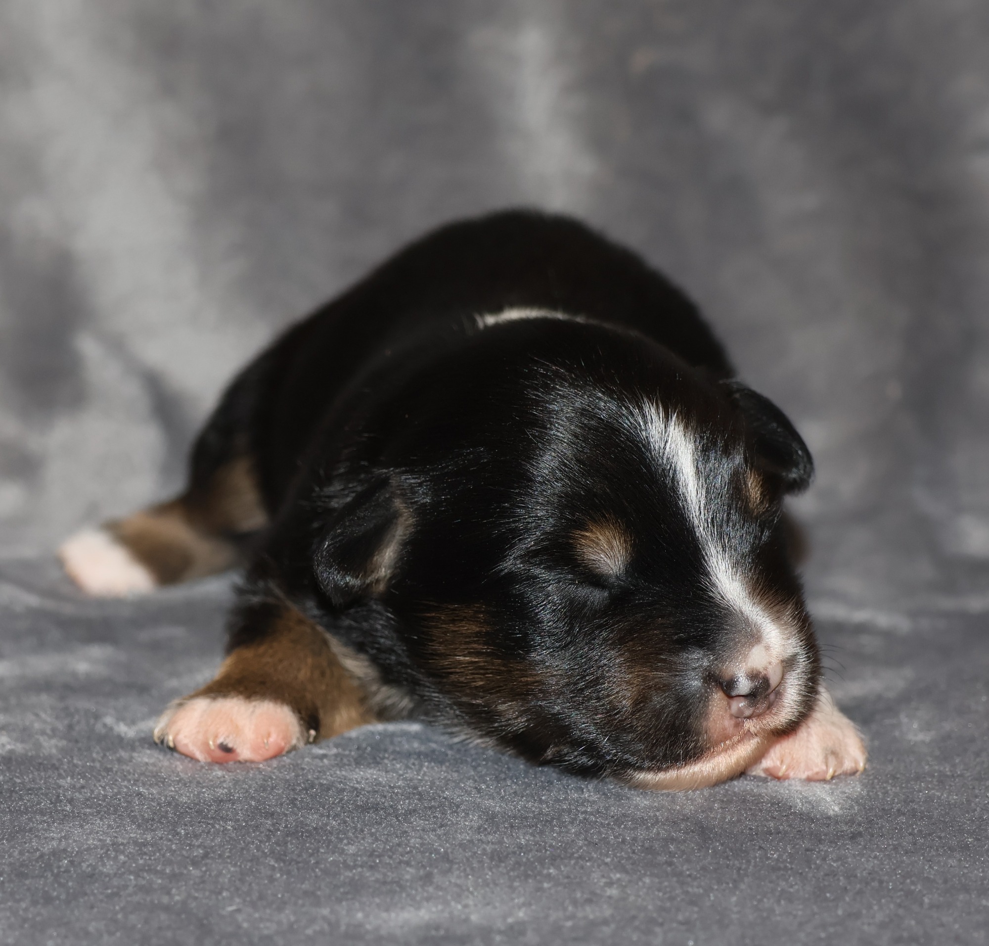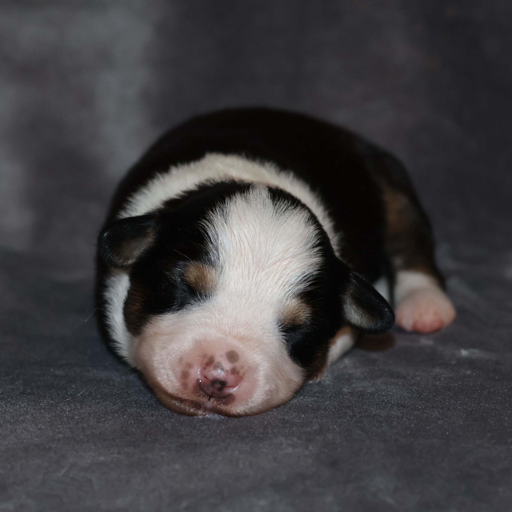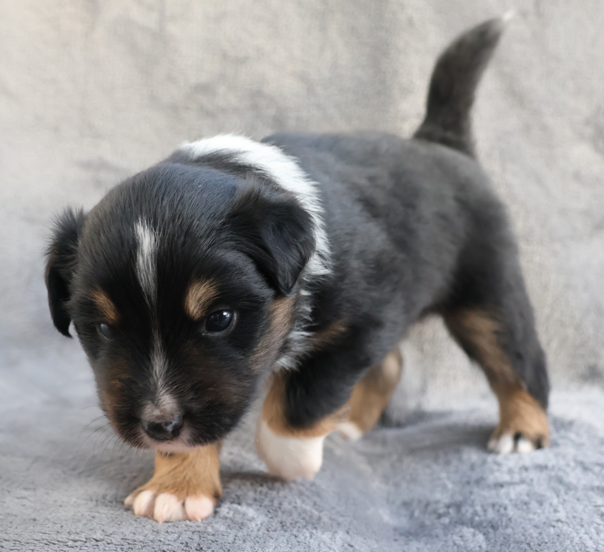Geboren wurden 2 Hündinnen in Blue Merle und Black Tri und 3 Rüden in Black Tri.