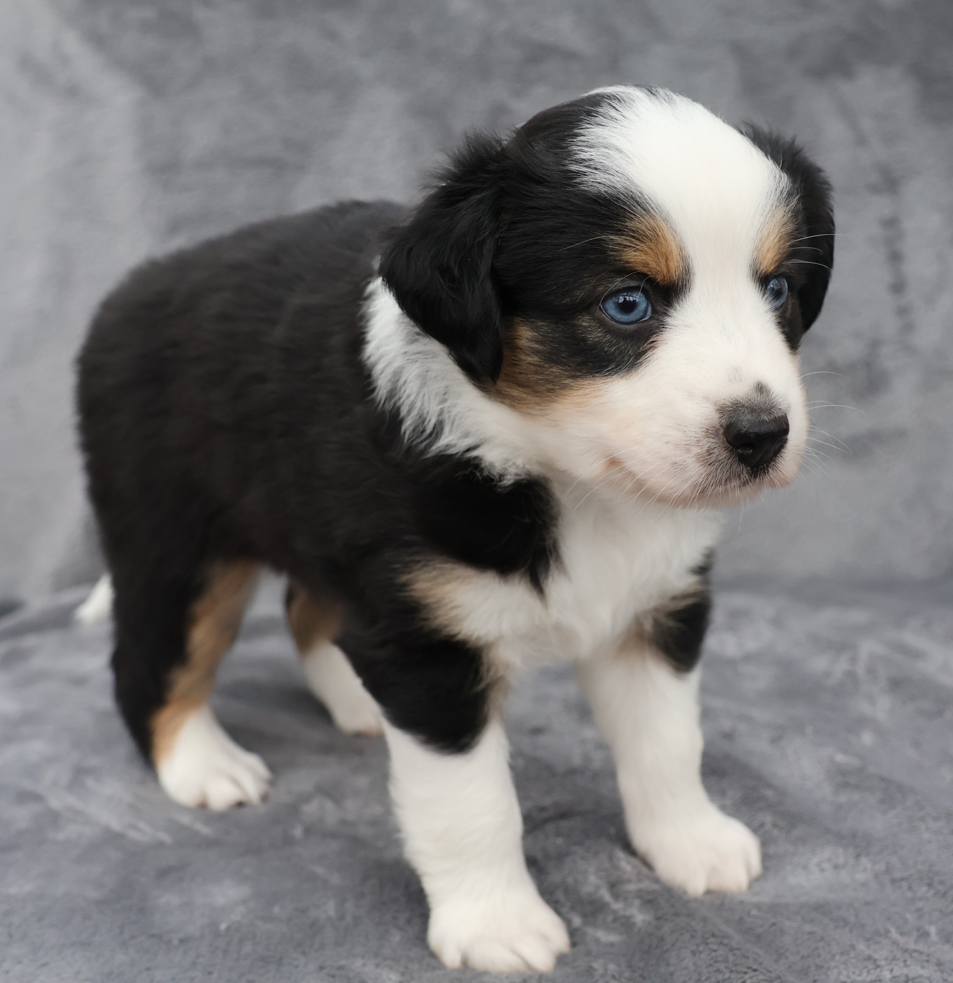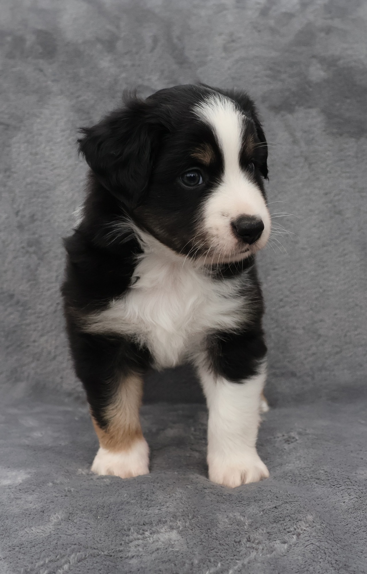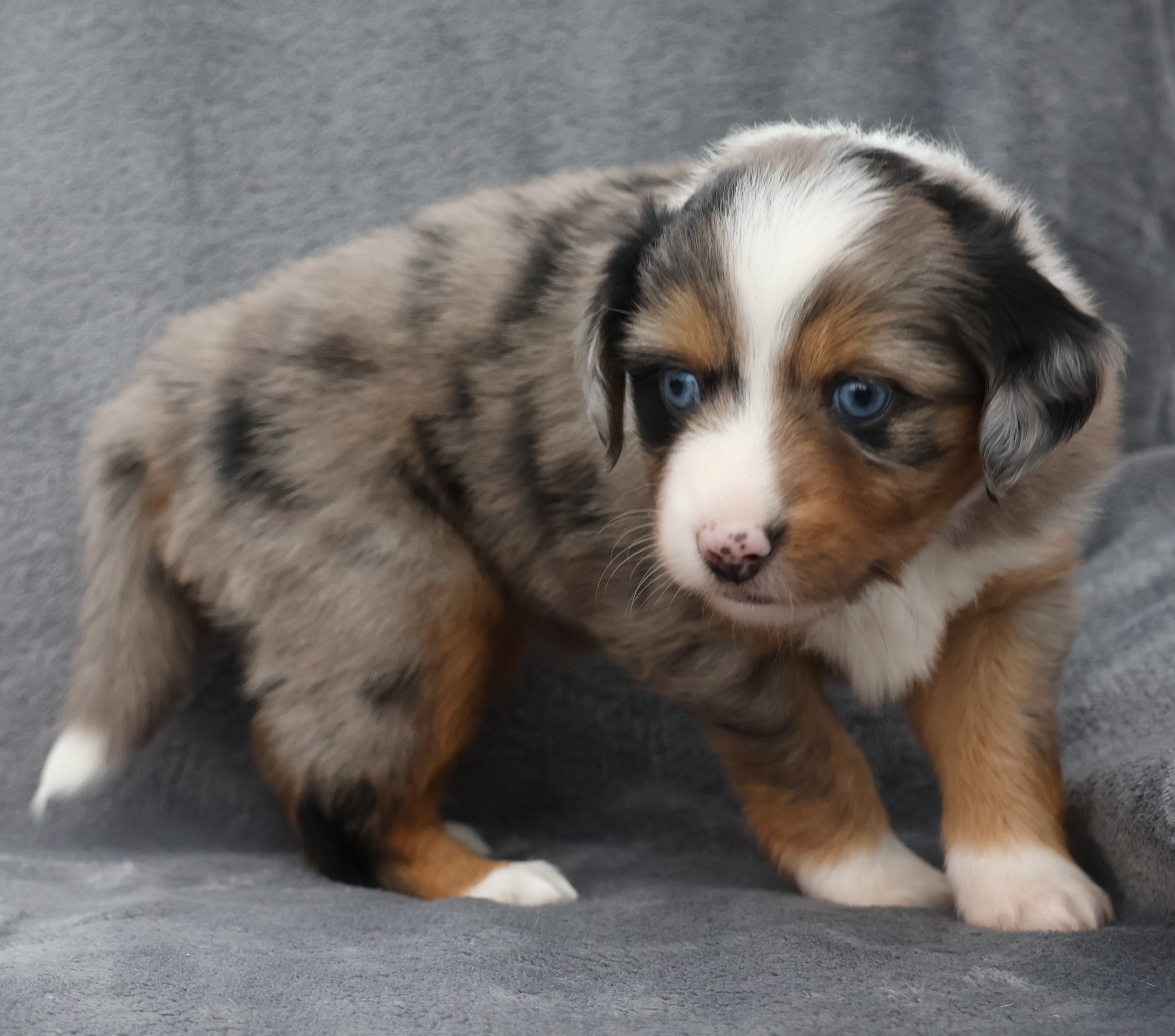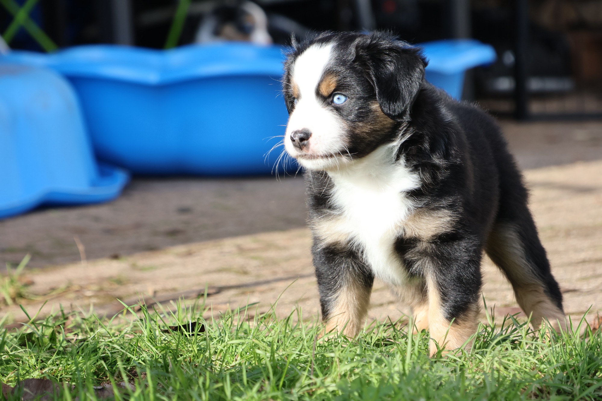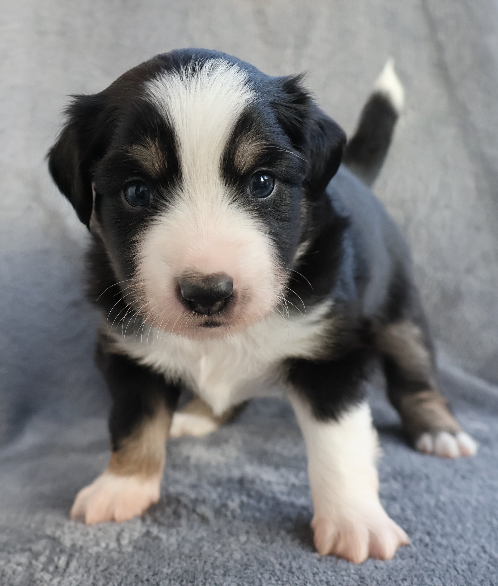 Geboren wurden 2 Hündinnen in Blue Merle und Black Tri und 3 Rüden in Black Tri.
