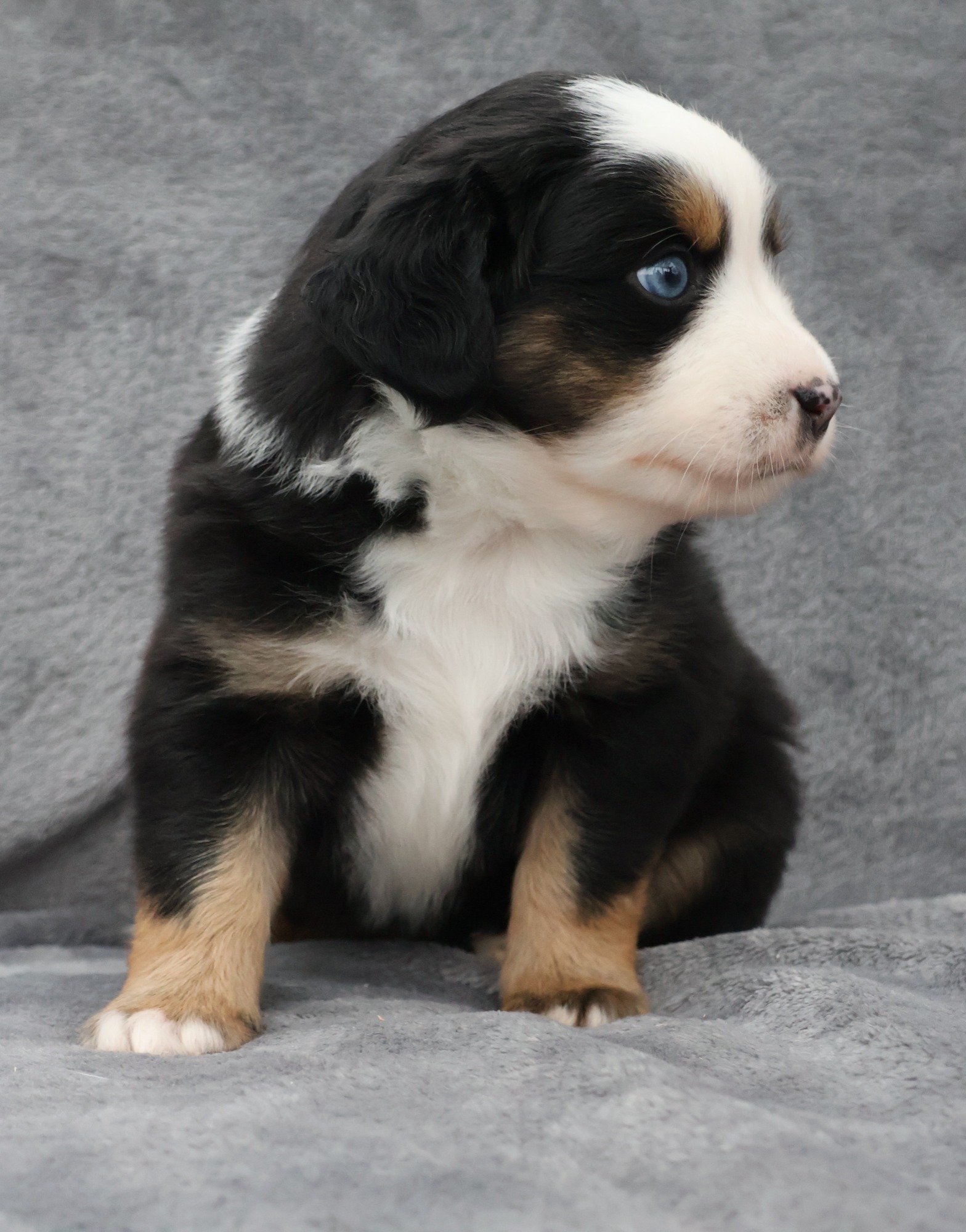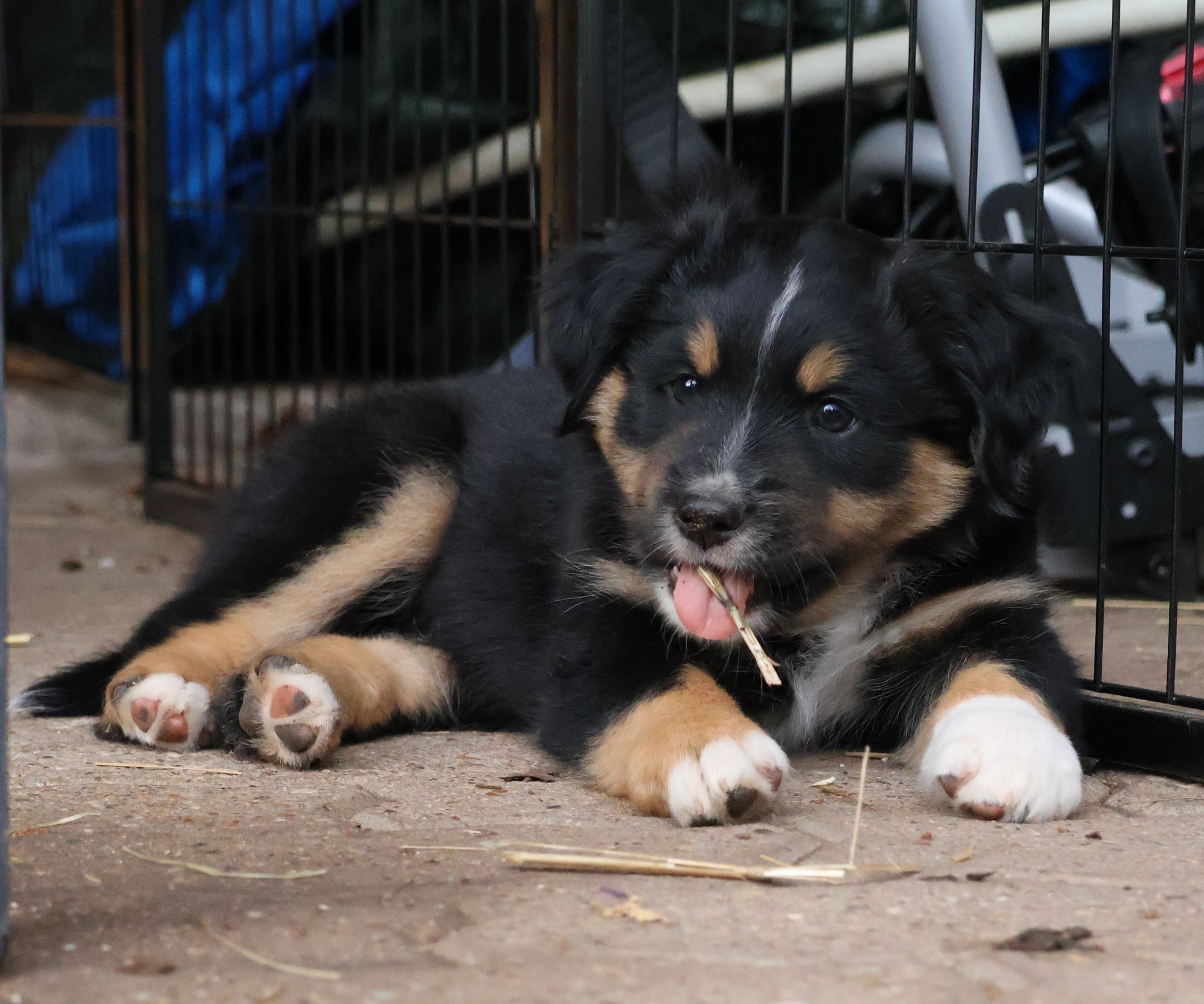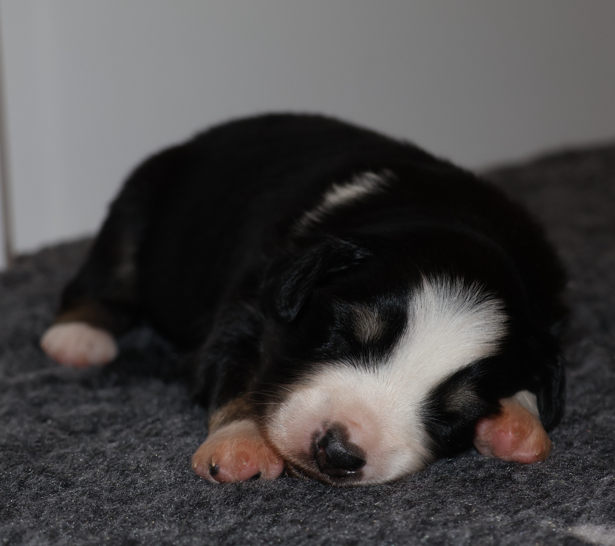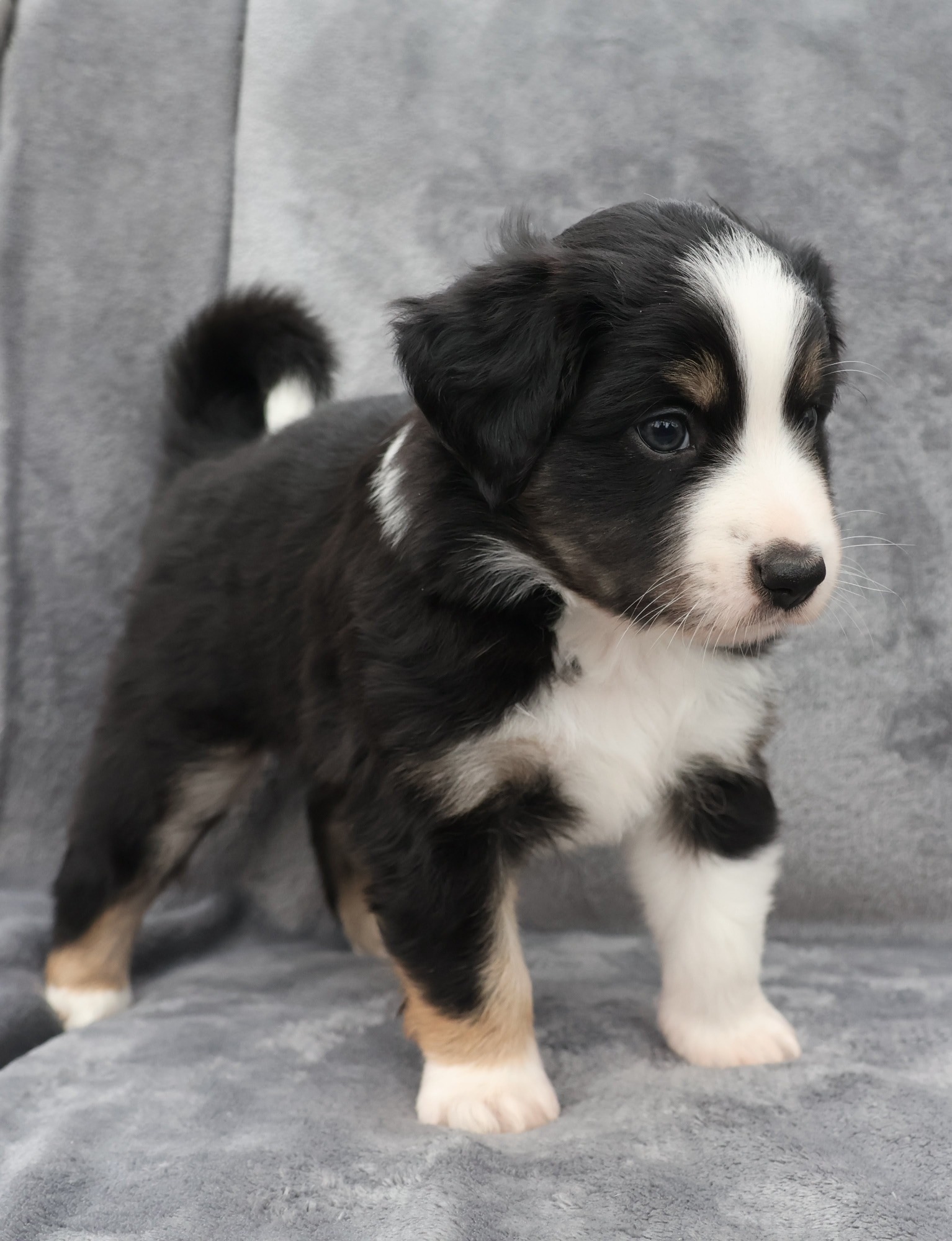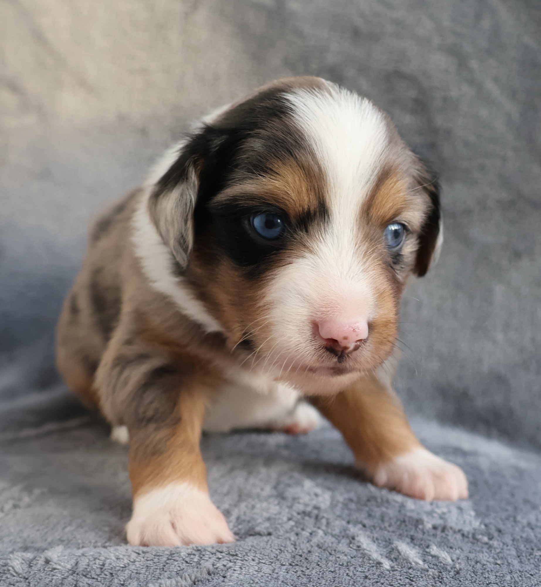 Geboren wurden 2 Hündinnen in Blue Merle und Black Tri und 3 Rüden in Black Tri.